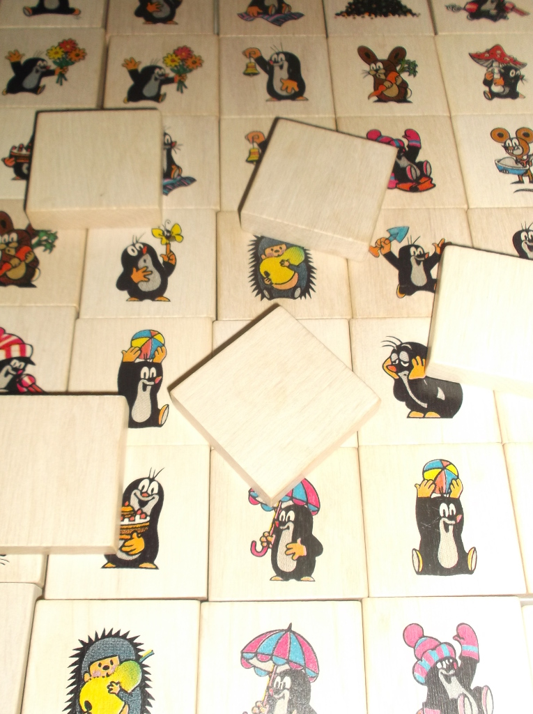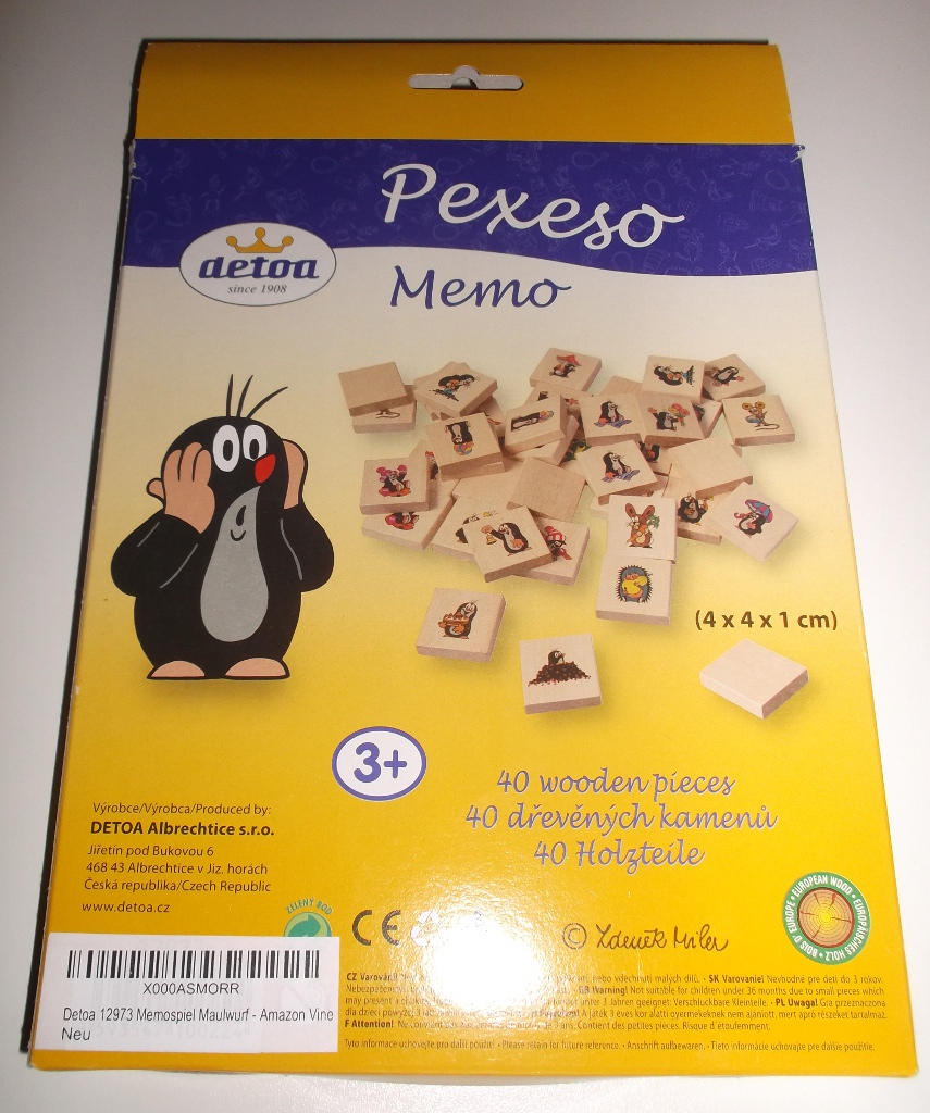 Das Holz-Memory der tschechischen Traditionsfirma Detoa ist einfach toll. Die dicken Holzteile lassen sich von Kinderhänden wunderbar greifen. Sie sind dick genug, dass man sie auch als Bauklötze nutzen kann.