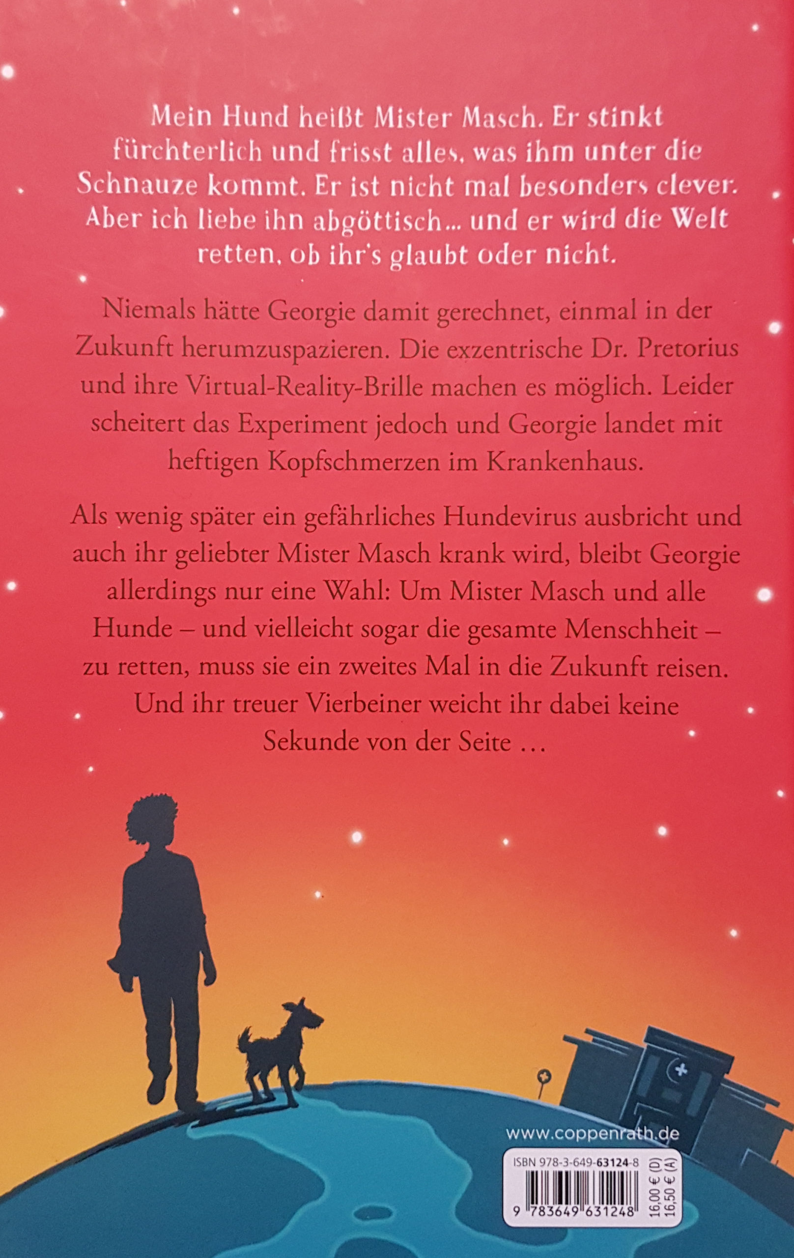 Georgie lebt mit ihrem fünf Jahre älteren Bruder, ihrem Vater und dessen Freundin Jessica im Nordosten Englands. Georgies Mutter starb schon vor langer Zeit an der Rindergrippe. Mister Masch darf leider nicht bei Georgie wohnen. Denn Jessica reagiert hochallergisch auf Hunde. So besucht Georgie den Mischling so oft es geht im Hundeheim St. Bello. Bis eine tödliche Hundeseuche ausbricht und die Ereignisse sich überschlagen.